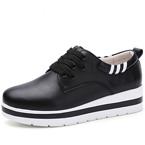 Best Seller! Sunrolan Women's Comfort Lace up Leather Pumps Casual Shoes Sneakers Trainer Daily Pumps black 37 Review